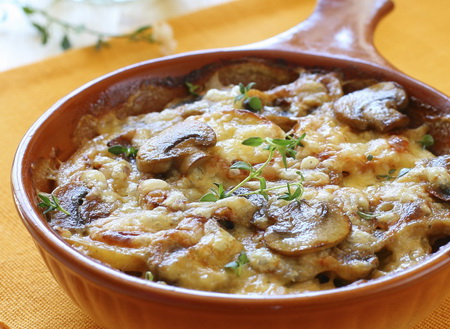 Эту запеканку можно разнообразить, приготовив её с фаршем или грибами в качестве начинки. Наша запеканка из тертого картофеля с чесноком и сыром готова.