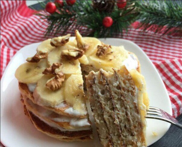 Все ингредиенты смешать (кроме творожка для крема). Ложкой выкладывать тесто на сухую сковороду (как оладьи, можно немного больше в диаметре). Накрыть крышкой. Жарить с двух сторон до готовности. Чуть-чуть охладить, промазать мягким творожком с подсластителем.